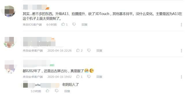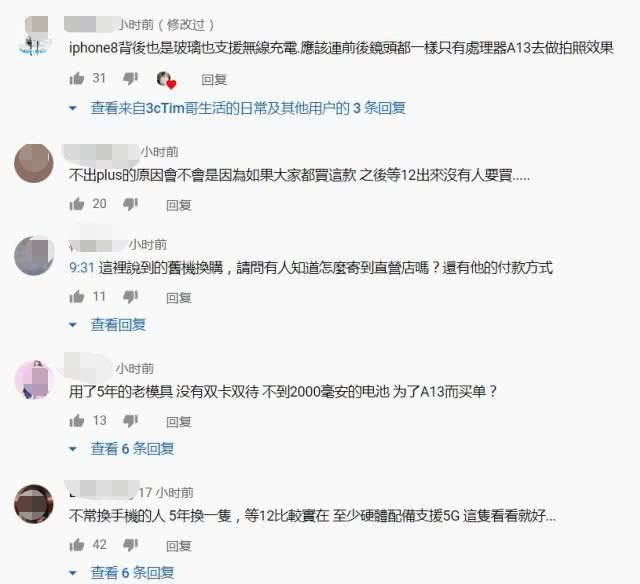 我们除了看到苹果官网有宣传新机的信息,在其他社群视频网站都有SE相关视频,而且火爆程度不亚于其他竞品的新机,不得不说苹果的号召力确实还是强悍,在油管、B站很多科技区的UP主,也纷纷来对比iPhone8与SE的差异。引来网友们纷纷评论,下面摘录几段网友的评价。