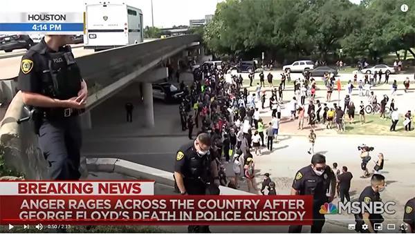 休斯敦市长希尔韦斯特·特纳在推特上敦促市民回家。根据该市发出的一份声明,休斯敦在抗议期间关闭了通往市区的所有高速公路和街道,城市警报敦促市民避开市区。