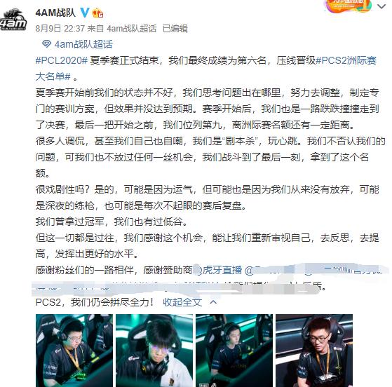 当然,压线晋级的4AM也是承受了不小的舆论压力,对于一些不好的声音,4AM也是发声了,而且很让人感动,正如官博所说,不只是运气,也许还有每一次的深夜练枪。是的,每一个结果都是有过程的,如果只靠运气,何必努力呢?