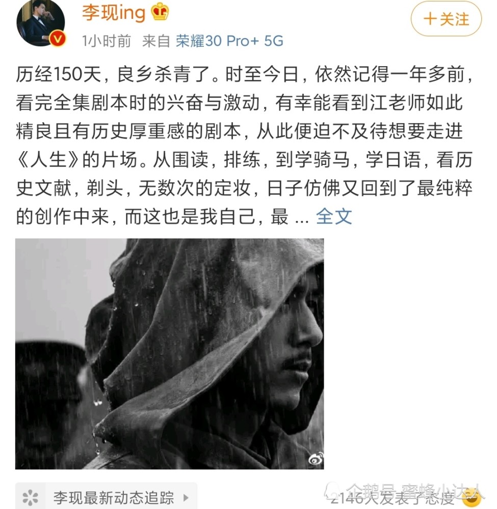 李现主演的电视剧《人生若如初见》已经正式杀青,李现在社交平台发长文告别良乡,李现表示回忆这一年多受益良多、通过这部剧自己学会了骑马,日语,看历史文献,剃头等无数次的定妆,虽然不舍良乡,但未来的路我还得继续。