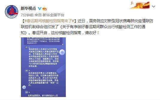 近日,国务院应对新型冠状病毒肺炎疫情联防联控机制综合组印发了《关于有序做好春运期间群众出行核酸检测工作的通知》。春运开启,这份核酸检测指南,请收好!