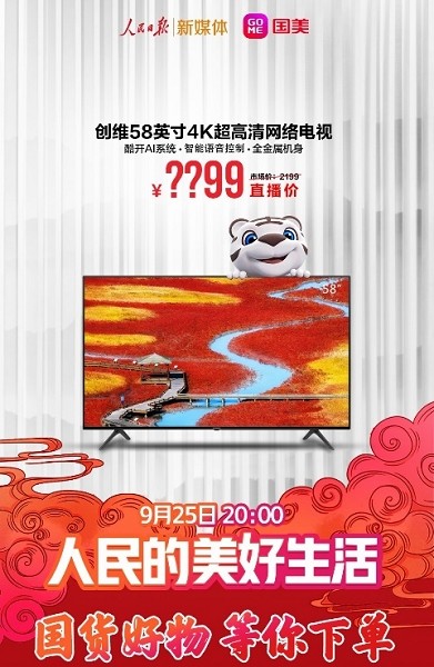 “人民对美好生活的向往就是我们的奋斗目标。好的方针政策和发展规划都应该顺应人民意愿、符合人民所思所盼……”时逢祖国71周岁华诞,在国庆、中秋双节来临之际,为助力人民美好生活,9月25日(周五)晚20点,大中与人民日报将在北京联袂开启以“人民的美好生活”为主题的超级带货直播。